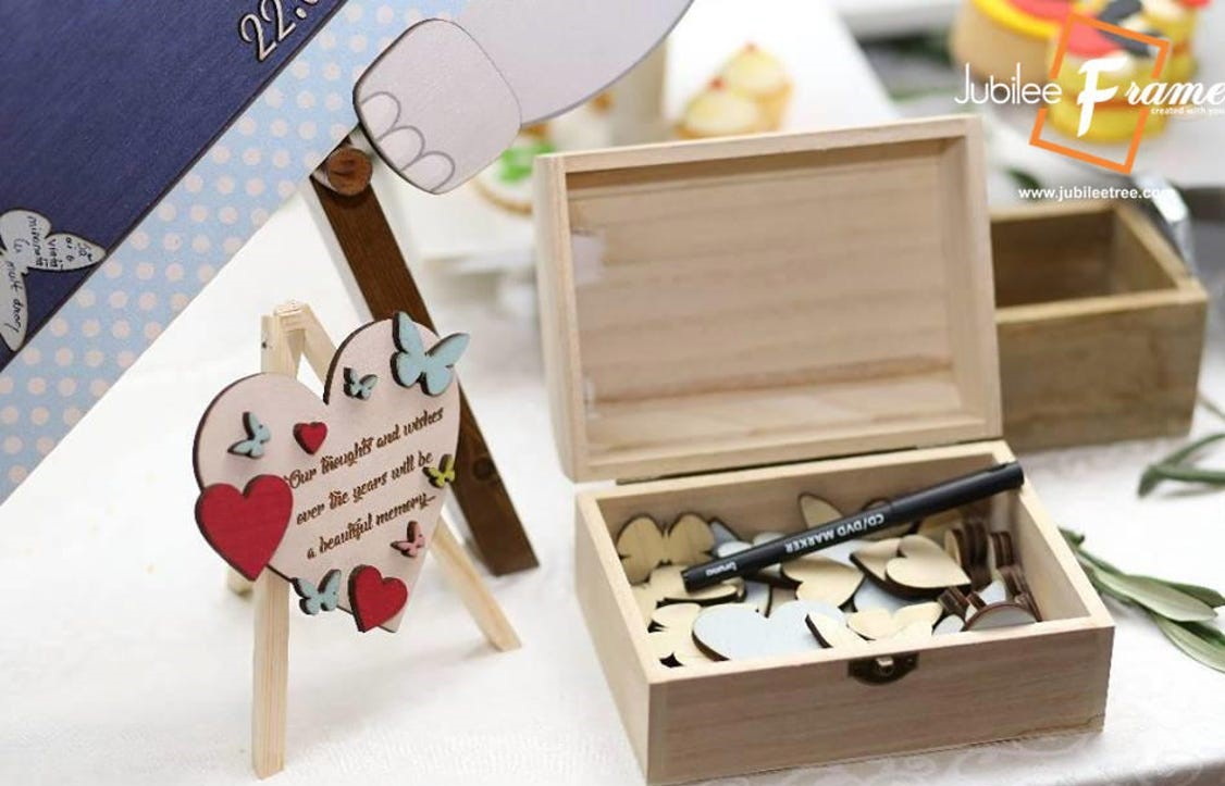 3. A self-assembly personalized wooden chest for storing the hearts during the event.