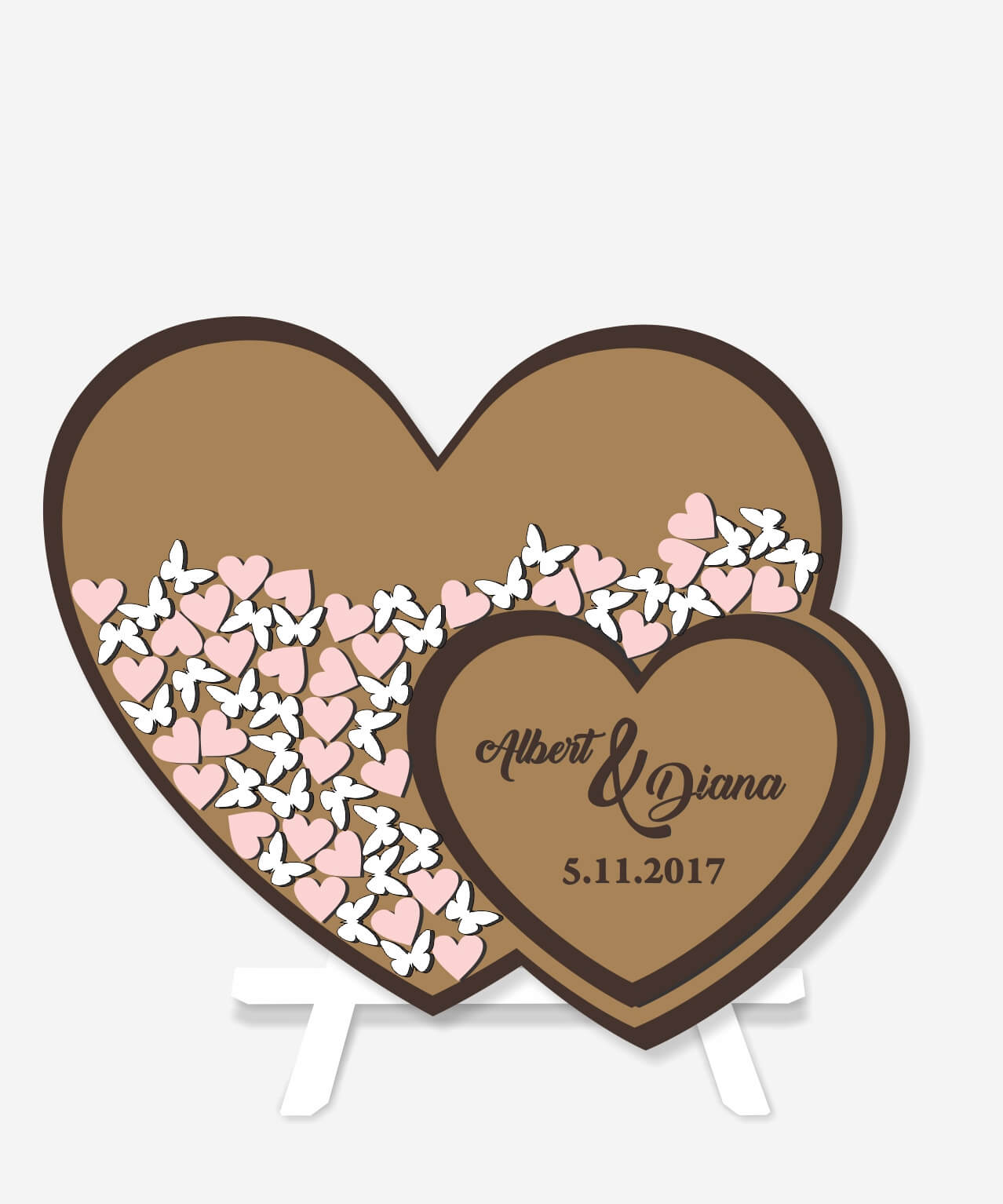 – you can choose any colors for the background as well as other elements that make it up (names, date, hearts, butterflies or any other form, etc.)