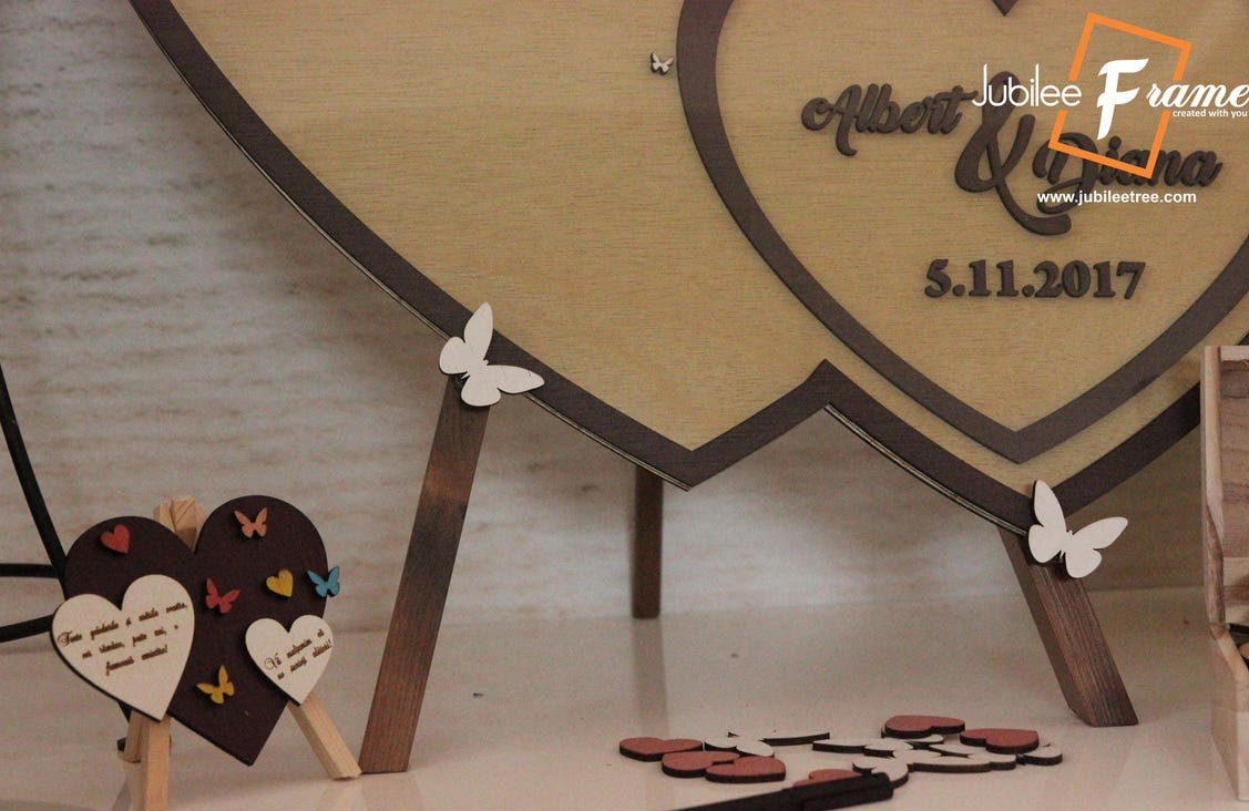 Each Jubilee Frame product is thought and designed as a unique wedding guest book, is made only different types of wood.